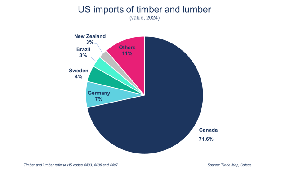 Όπως οι φαρμακευτικές, το ατσάλι, και άλλα προϊόντα που στοχεύονται από ειδικά μέτρα ανά τομέα, η ξυλεία από μαλακό ξύλο τυγχάνει ιδιαίτερης προσοχής από την κυβέρνηση των ΗΠΑ λόγω της μεγάλης εξάρτησης της χώρας από τις εισαγωγές. Το 2024, οι Ηνωμένες Πολιτείες εισήγαγαν τέσσερις φορές περισσότερη ξυλεία από μαλακό ξύλο από ό,τι εξήγαγαν. Επιπλέον, αυτός ο τύπος ξύλου χρησιμοποιείται ευρέως σε αστικές και στρατιωτικές κατασκευές, καθιστώντας τον ένα πολύτιμο αγαθό στα μάτια της κυβέρνησης των ΗΠΑ.