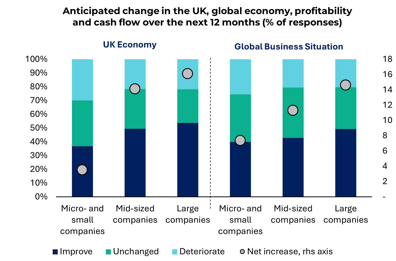 Παρά τις τρέχουσες προκλήσεις, υπάρχουν σημάδια ελπίδας. Πάνω από το ένα τρίτο των εταιρειών αναμένουν μείωση των καθυστερήσεων πληρωμών το 2026, ενισχυμένες από τη βελτίωση του οικονομικού κλίματος και τις προσδοκίες για ισχυρότερη κερδοφορία και ταμειακή ροή. Ωστόσο, αυτή η αισιοδοξία είναι άνιση, με τις πολύ μικρές και πολύ μικρές επιχειρήσεις να παραμένουν πιο επιφυλακτικές - το 66% πιστεύει ότι η οικονομία του Ηνωμένου Βασιλείου θα επιδεινωθεί περαιτέρω ή θα παραμείνει αμετάβλητη το 2026, και αρκετοί τομείς εξακολουθούν να αντιμετωπίζουν διαρθρωτικούς κινδύνους, όπως η αστάθεια των επιτοκίων, οι κυβερνοαπειλές και οι διαταραχές της εφοδιαστικής αλυσίδας.